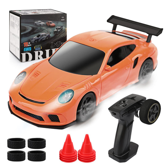 1/43 Scale Mini Drift Rc Car with Gyro, 2.4GHz Throttle & Steering Full Proportional Control Remote, 2 Sets of Tires, 8 Road Cones, High-Speed Rc Drift Car Simulate Led Light - Camouflage
