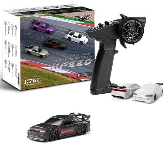 Turbo Racing 1:76 Scale Drift RC Car with Gyro Mini Full Proportional RTR 2.4GHZ Remote Control with 2 Replaceable Body Shell (C64-BLUE)